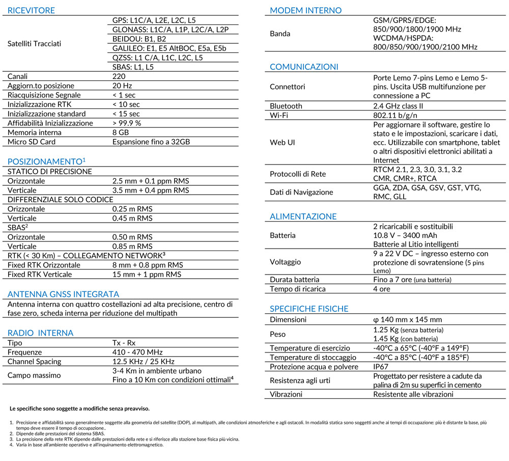 Il design sofisticato della struttura interna garantisce un alloggiamento compatto: antenna GNSS, scheda GPS, scheda di alimentazione, radio RX / TX, batteria intelligente, modulo 3,5G, modulo BT e modulo Wi-Fi si trovano tutti in uno spazio ben organizzato, ottimizzando le prestazioni e consumo di energia.